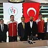 Konuşmaların ardından Şentürk, Aksoy’a milli takım forması hediye etti.