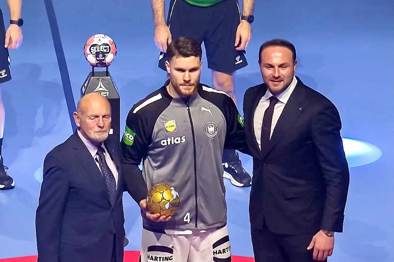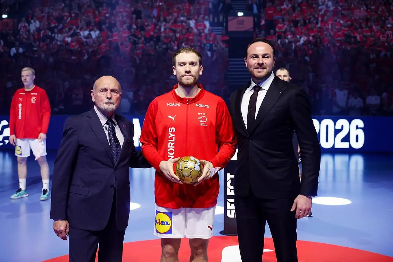 2026 Avrupa Erkekler Hentbol Şampiyonası'nın All-Star ödüllerini EHF Yönetim Kurulu Üyesi ve Türkiye Hentbol Federasyonu Başkanı Mesut Çebi verdi