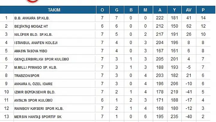 Erkekler Süper Ligi’nde 7. hafta maçları yapıldı. Büyükşehir Belediyesi Ankaraspor Kulübü maç fazlasıyla liderliği ele geçirdi.