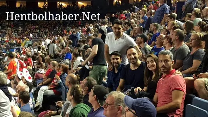 Müsabakaları takip eden oyuncularımız Hentbolhaber.Net, poz vererek tüm hentbol severlerin buradaki çoşkuyu yaşanmaları gerektiğini aktardılar.