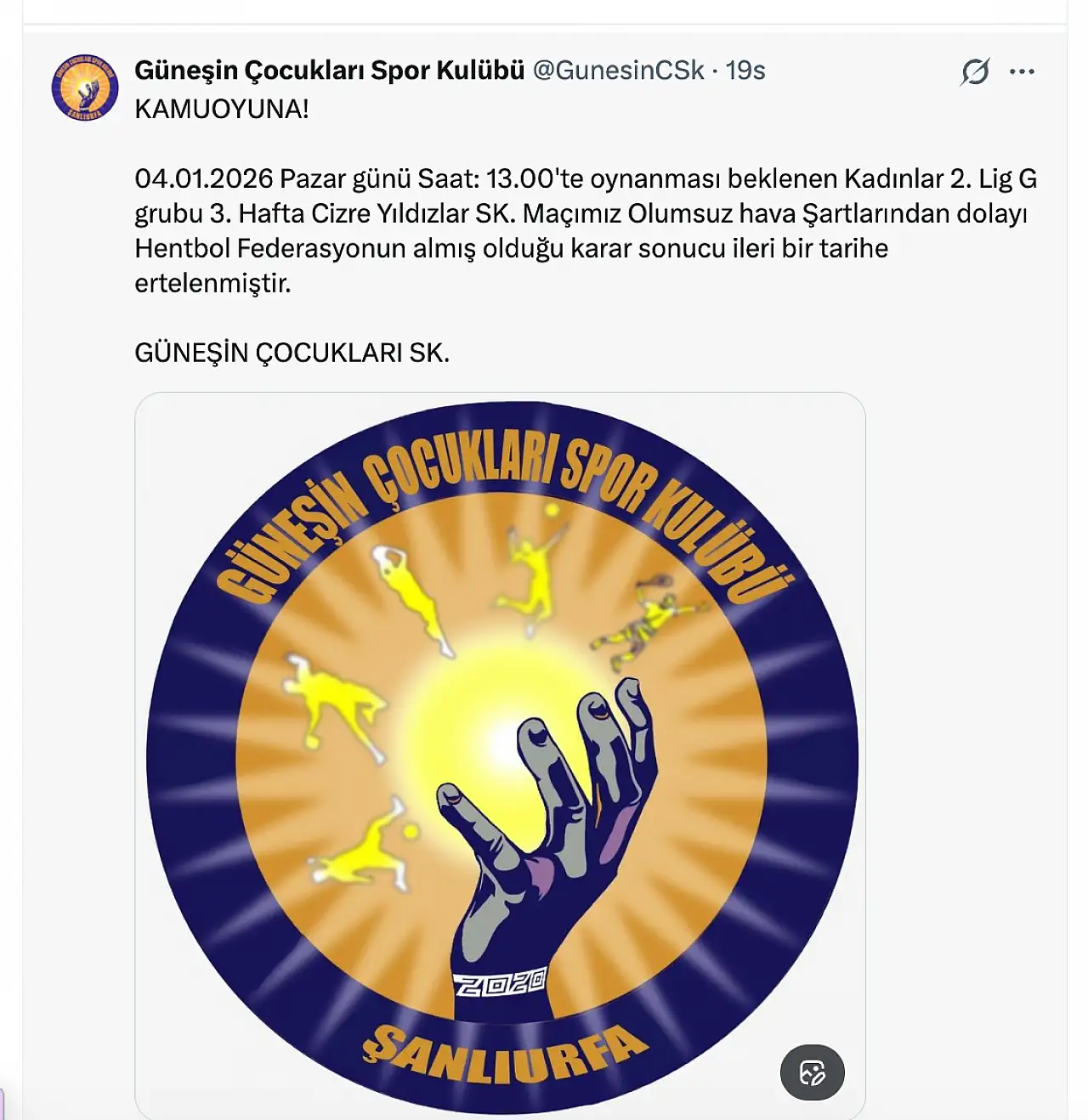 Liglerde mücadele eden takımların sosyal medya paylaşımlarından, olumsuz hava koşullarından dolayı müsabakaların ertelendiği öğrenildi.